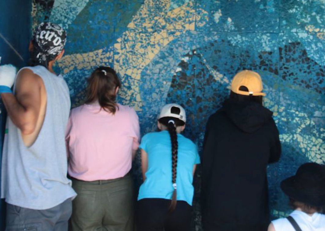 Волонтёры решили сделать всем красиво и почистили советскую мозаику на остановке недалеко от Светлогорска.