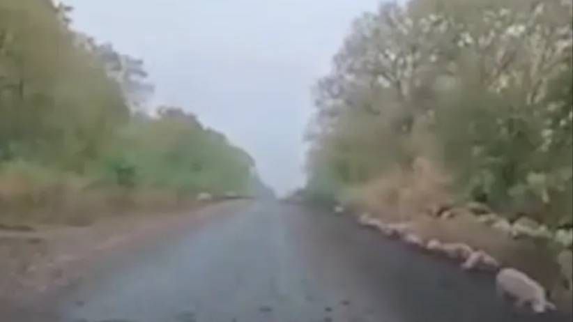 Украинские солдаты разбежались в разные стороны вместе с хрюшками. Теперь пятачки гуляют вдоль трассы возле Новоселидовки.