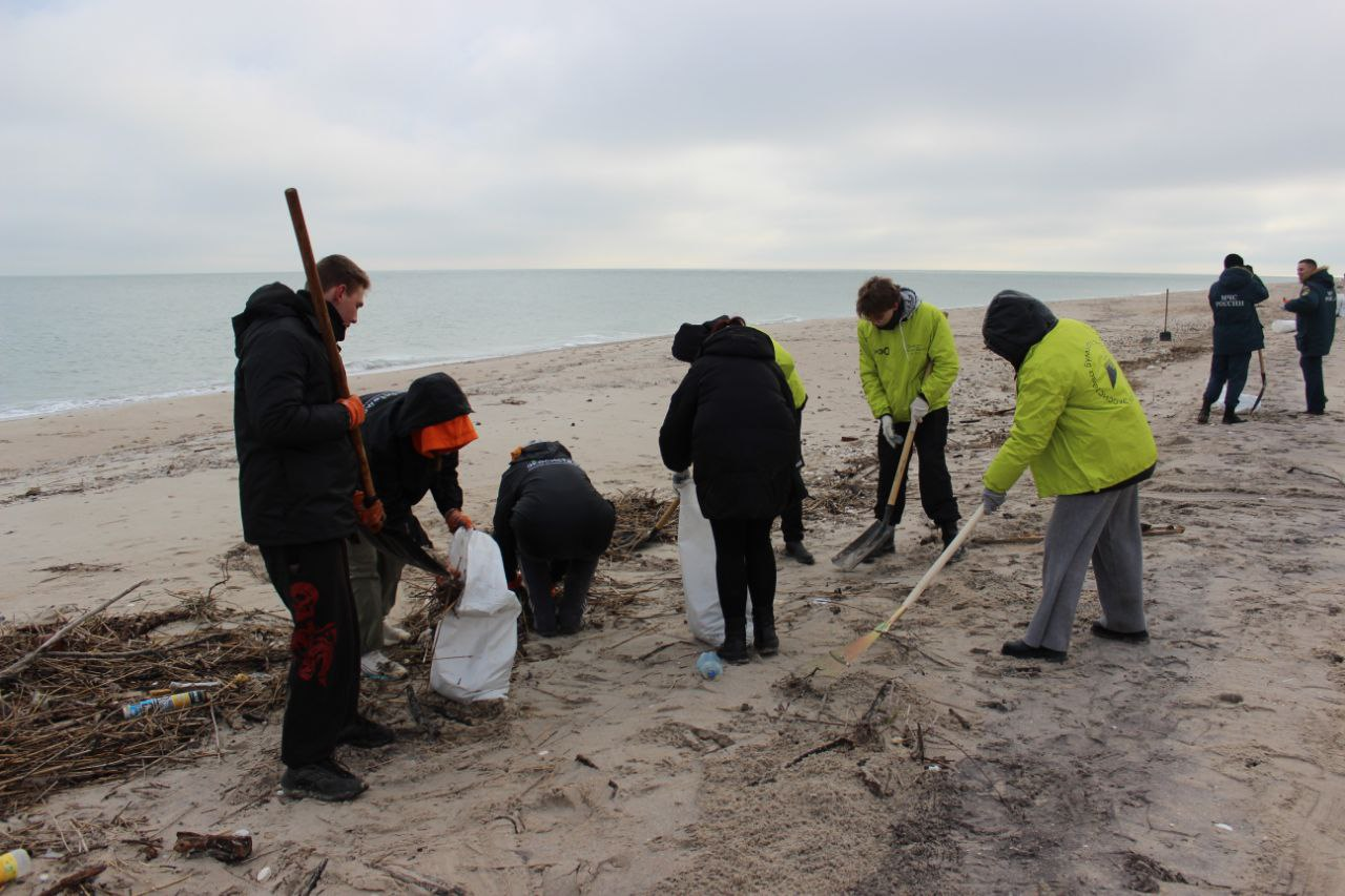 Спасатели вместе с волонтёрами прошли больше 14 км береговой линии и собрали 2385 мешков. Пока их сложили на бетонную площадку, но позже обещают убрать совсем.