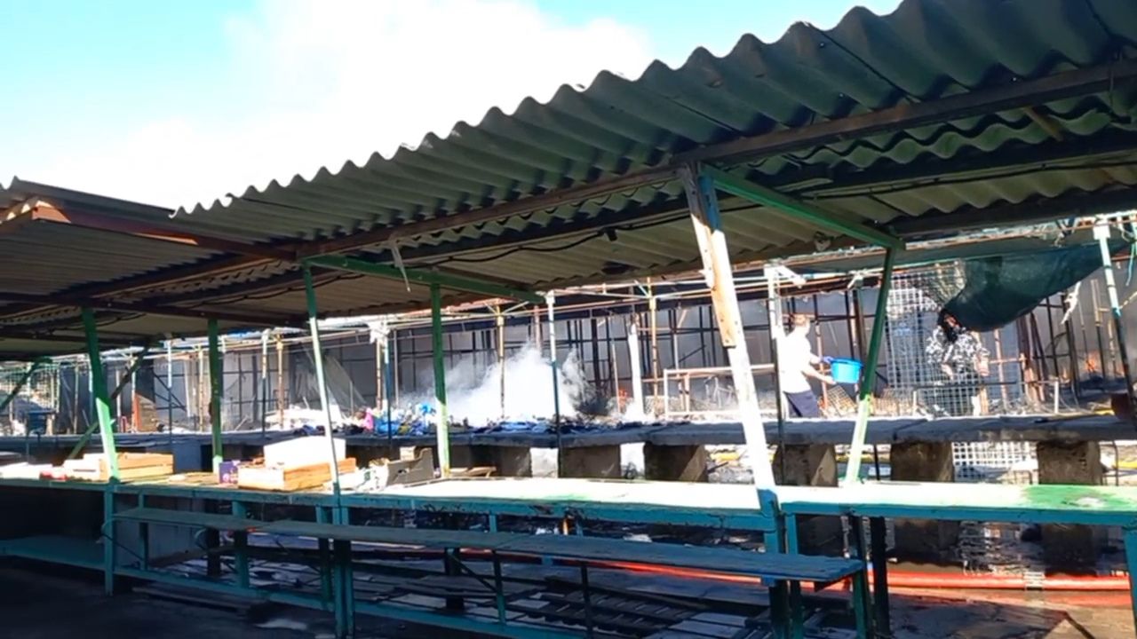 Горит центральный рынок в Геническе. Огонь охватил 600 квадратных метров в рядах, где продают одежду.