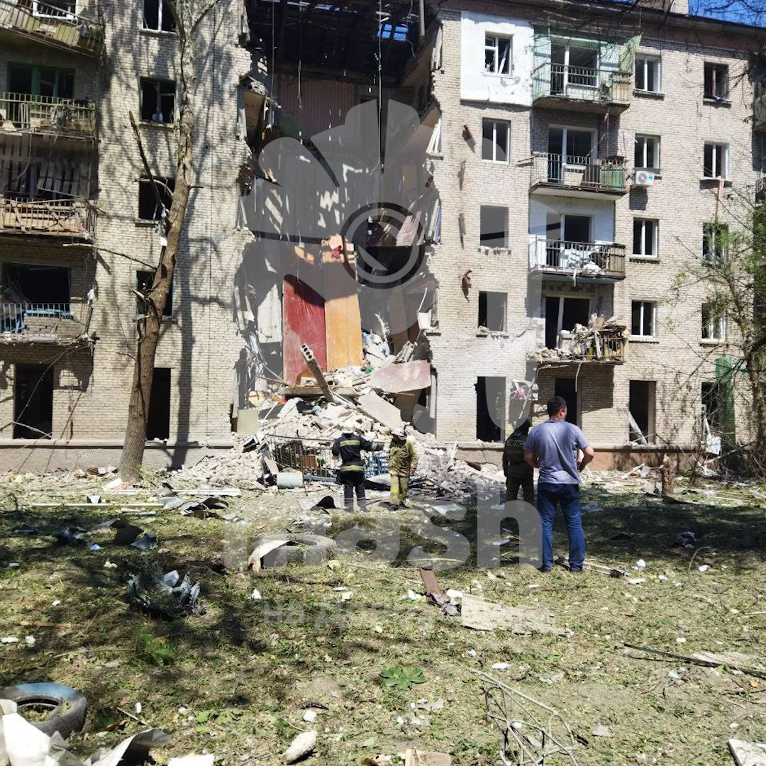 Из-за обстрела подъезд обрушился с 5 по 1 этаж. На месте спасатели продолжают разбирать завалы и искать людей.