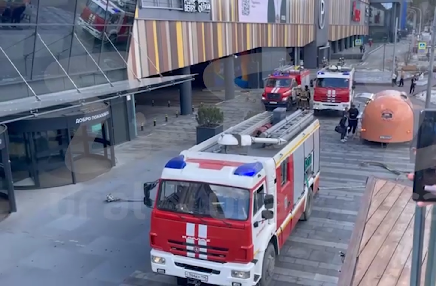 К ТЦ приехали тринадцать пожарных машин — всех посетителей эвакуировали. За полгода это уже второе ЧП в сети фастфуда, первый был в "Пассаже".