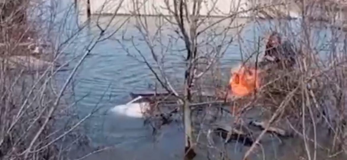 Курганец всеми силами пытался спасти свою кошку из воды. Но лодку проткнула ветка, и помощь понадобилась уже ему.