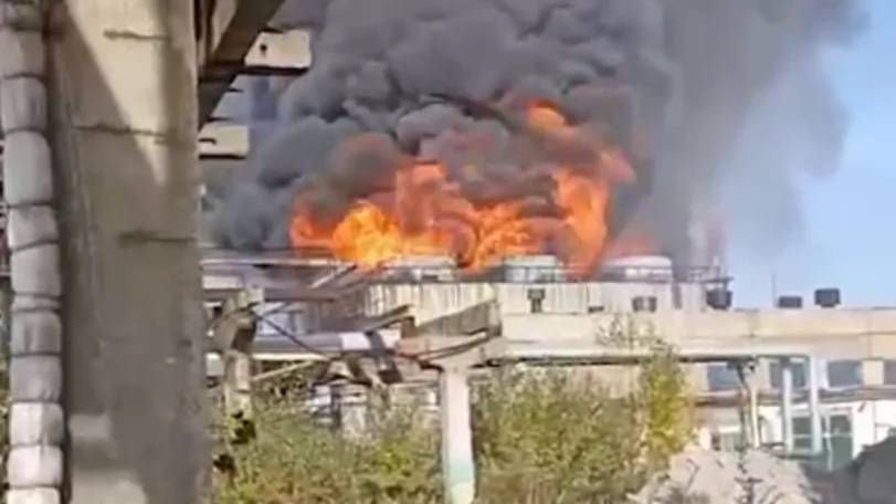 Сильный пожар в Перми — горят очистные сооружения местного завода.