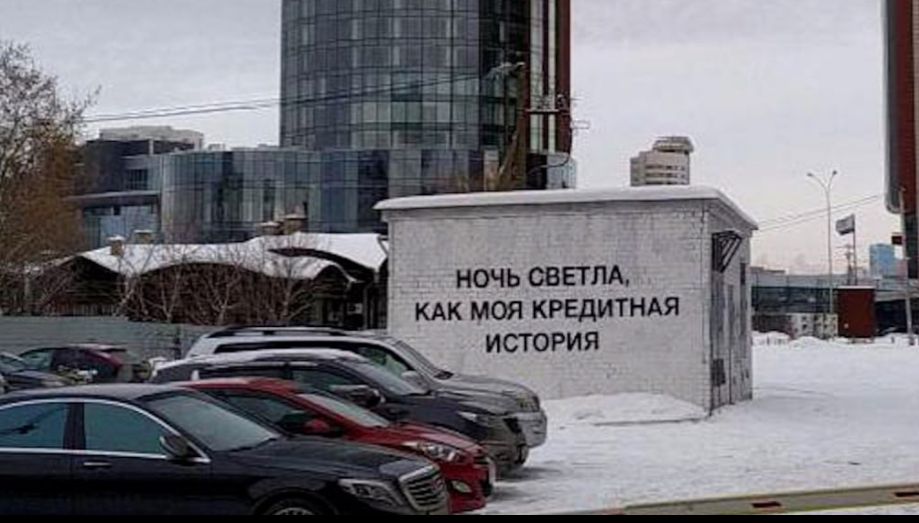 Надпись появилась на трансформаторной будке в 2019-м. Тогда автор Илья Мозги объяснил, что это размышление офисного работника, который погряз в рутине и ему ни на что не хватает времени. Ночь в интерпретации Ильи — это кредит. Сегодня рабочие замазали стену коричневой краской.