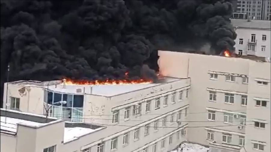 В Екатеринбурге загорелась крыша больницы на улице Быковых