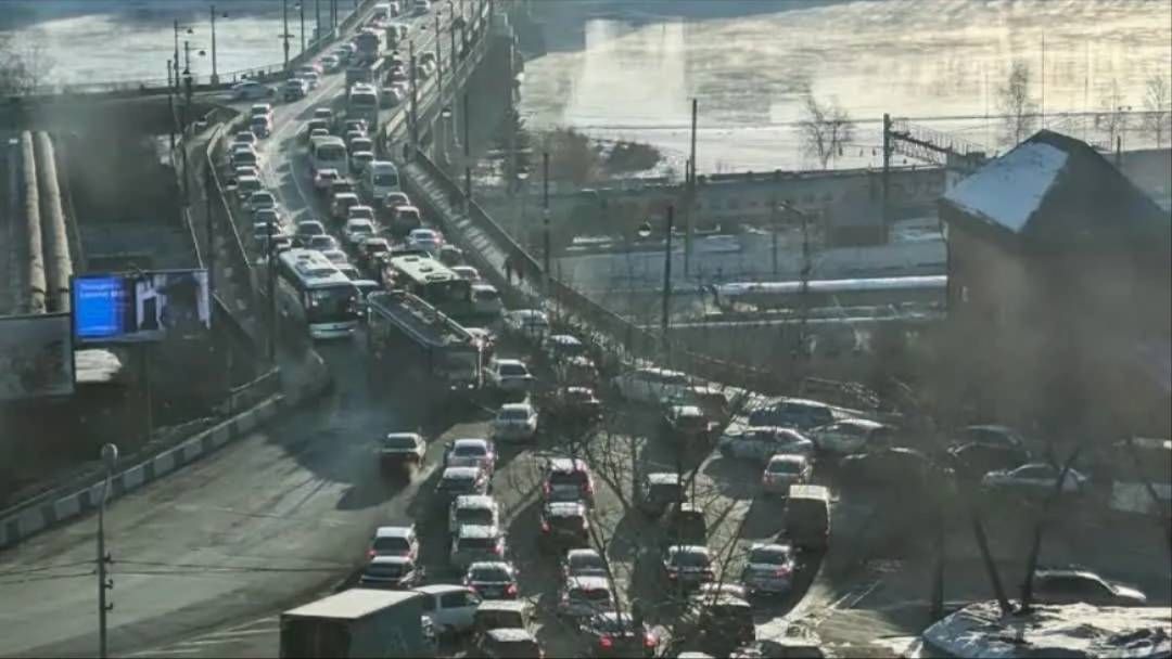 Глухая пробка на Глазковском мосту. Иркутяне стоят в ней уже больше часа.