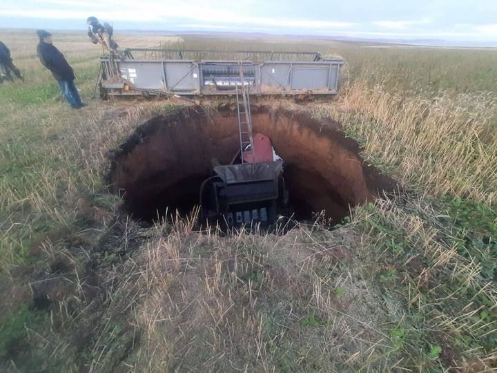 Карстовая воронка образовалась в Нукутском районе во время уборки урожая 19 сентября. В дыру рухнула машина, водитель погиб. После случившегося геологи изучили место и пришли к выводу, что подобное может повториться. Всё из-за заполнения Братского водохранилища, которое находится неподалёку.