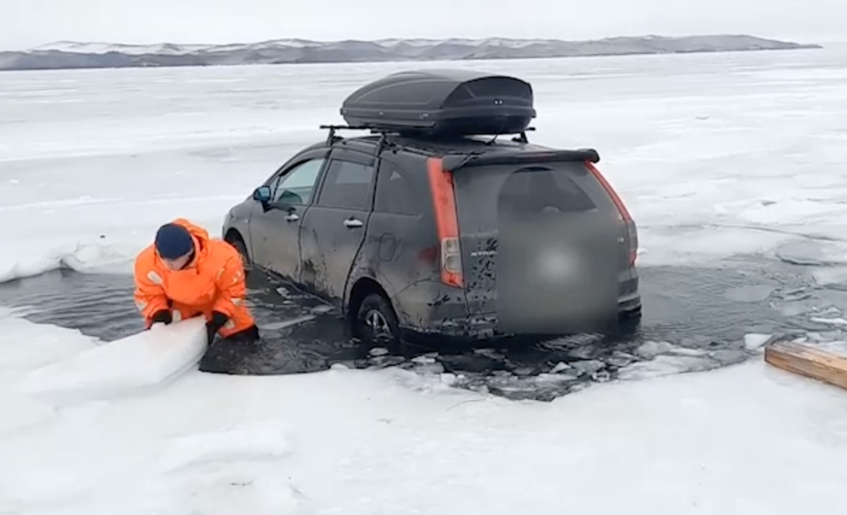 Машина с тремя детьми провалилась под лёд на Байкале.