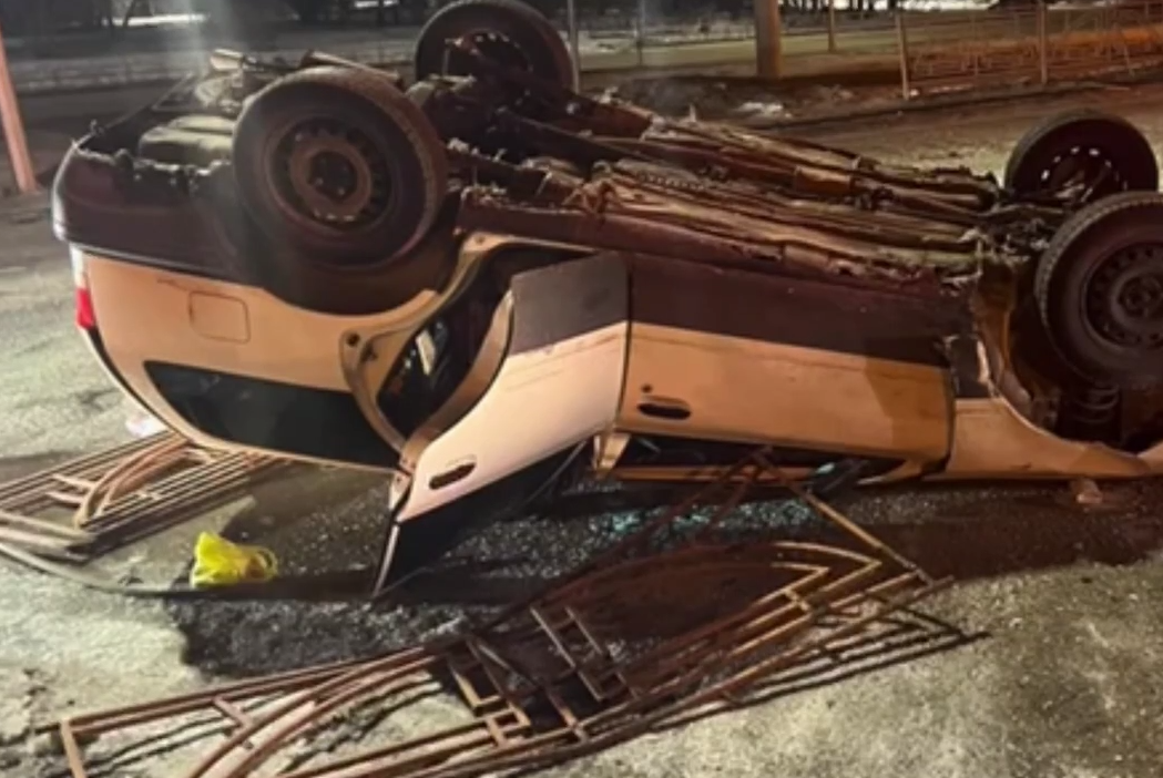 Водитель без прав перевернул машину, пытаясь сбежать от полиции в Усолье-Сибирском.