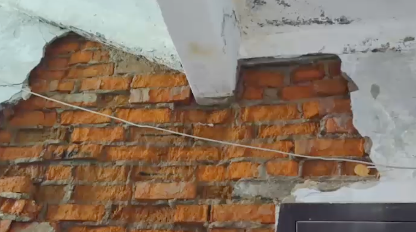 Коммунальщики проделали отверстие в постройке, что в микрорайоне "Таёжный", чтобы все нечистоты стекали в выкопанный вокруг ров. Сначала посыпалось снаружи: в четвёртом подъезде на несущей пошли трещины, обвалилась штукатурка с кирпичами. Позже разрушения появились и внутри. Здание не раз осматривали власти и прокуратура. Эффекта ноль.