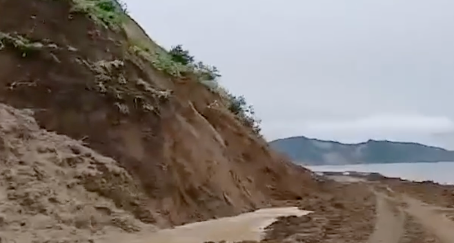 Так выглядит дорога после схода селя на Сахалине. Её всё ещё восстанавливают.