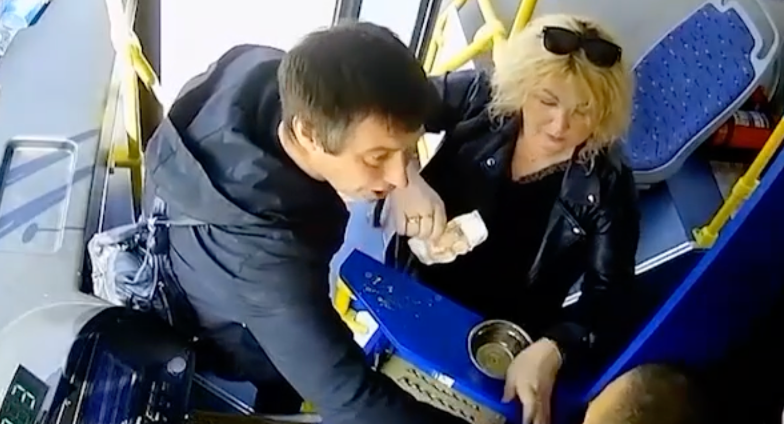 Пара собирались выходить на конечной 10-го маршрута, в кошельке было лишь 5к. Сдачи не нашлось, им предложили ехать бесплатно. Спустя время женщина всё же отыскала сотку и расплатилась. Её спутника что-то не устроило: он опрокинул терминал, пытался выхватить телефон из рук шофёра. На просьбы успокоиться (и оплеухи дамы) не реагировал.