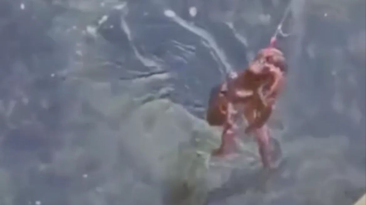 Осьминога поймали прямо на городской набережной на Сахалине.