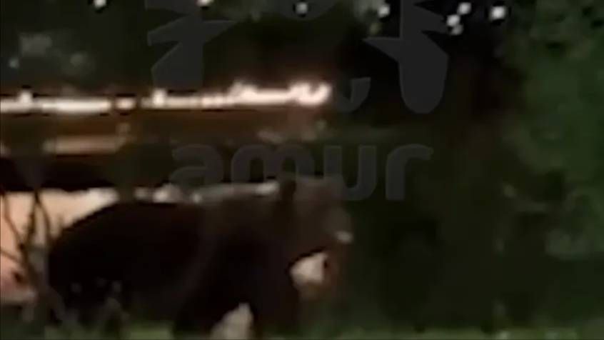 Косолапый устроил вечерний променад по столице полуострова. Томно бродил по набережной, наслаждаясь видами озера Култушное, пока не услышал сигнал двухколёсного.