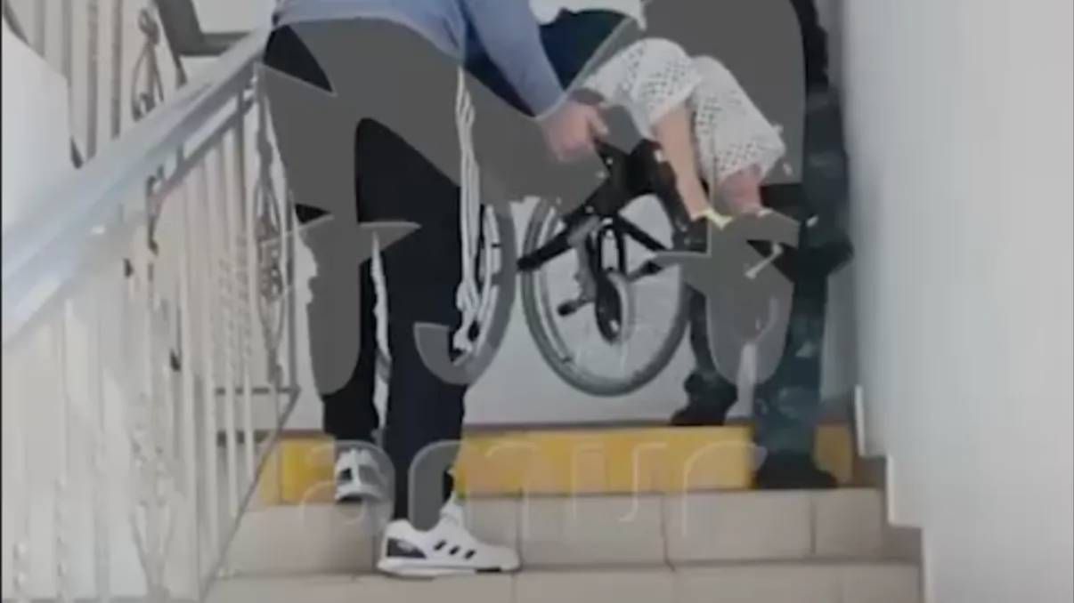 Колясочников спускают и поднимают вручную по лестнице в больнице Хабаровского края. Лифт там не работает уже третий день.