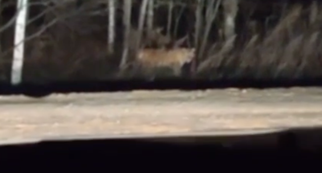 Двое хищников бродили у остановки "24-й км". Вышли к дороге, но, испугавшись машин, быстро рванули обратно в лес. Водители успели заснять их на камеру. Охотоведы же такой встрече не удивились: поблизости Большехехцирский заповедник и Хехцирский заказник.