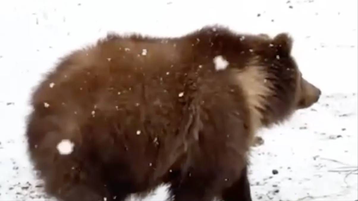 Первые кадры встречи камчатского медвежонка-сироты с сотрудниками питомника.