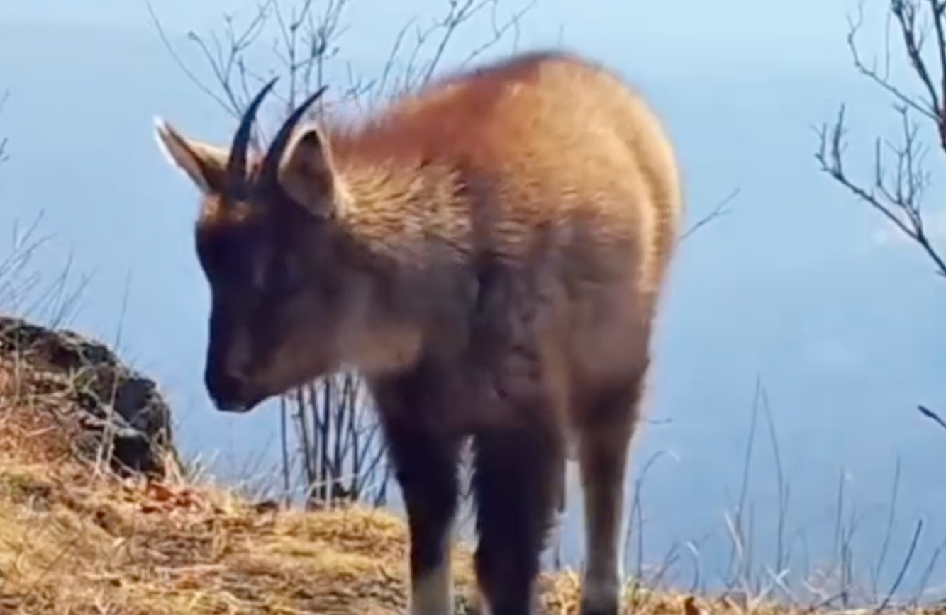 Мы про амурского горала — он занесён в международную Красную книгу как уязвимый вид. Эти козлики очень скрытны. Даже учёные не в курсе, сколько именно их осталось. Этот рогатый красавец совершенно случайно попался на фотоловушку, когда крался за вкусными веточками по Оленьему Утёсу.