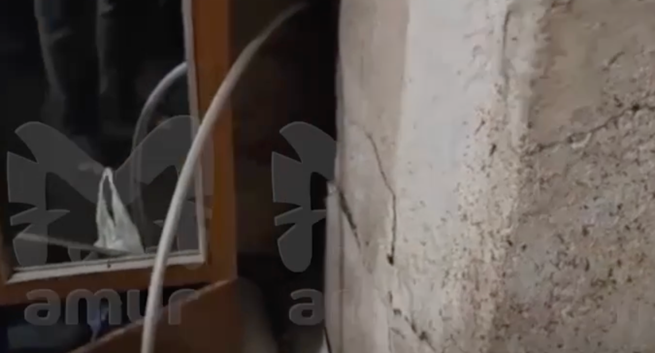 Печь провалилась с одного этажа на другой в одном из бараков Хабаровска. Момент — на видео.