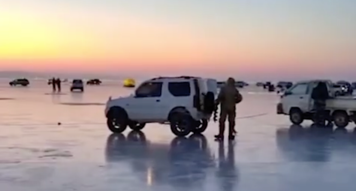 Больше тысячи приморских рыбаков выехали на замёрзшую реку, в которую на днях провалилась легковушка.