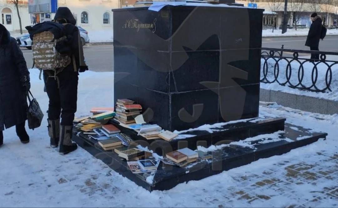 Памятник Пушкину забросали книгами при переезде библиотеки пединститута в ХГУЭП.