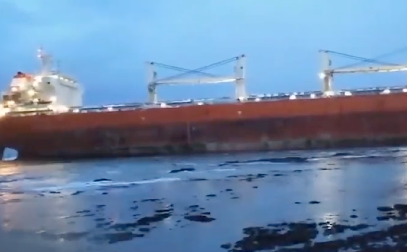 У An Yang 2 сорвало якорь — борт отбросило примерно за 200 метров от берега. В Невельском районе ввели режим ЧС. Из-за шторма подобраться к судну удалось только сегодня. Сейчас специалисты ставят боны — это защитит от возможной утечки нефтепродуктов. Также начали откачивать мазут.