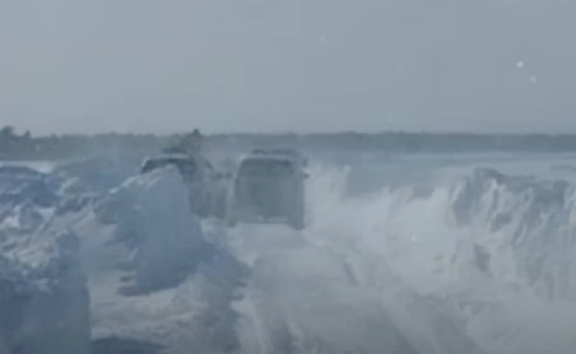 Сахалинские рыбаки снова застряли на льдинах. На этот раз перемело дорогу — собралась гигантская пробка.