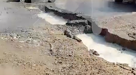 Разлом на дороге под автобусом в Хабаровске появился возле места подключения к коллектору.