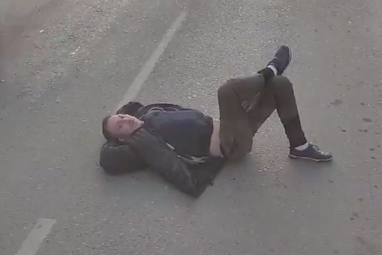 Мужик устроил дебош сначала в салоне 51-й маршрутки: облил всё пивом и заляпал машину. Когда мутного пассажира вежливо попросили на выход, дерзко преградил путь водиле своим телом и извалялся на улице Уссурийской.