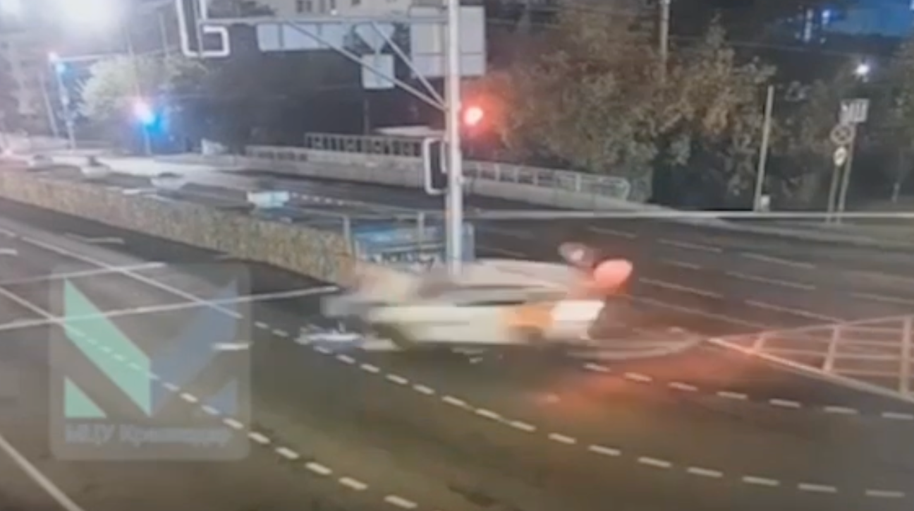 Легковушка вылетела с моста в Краснодаре.