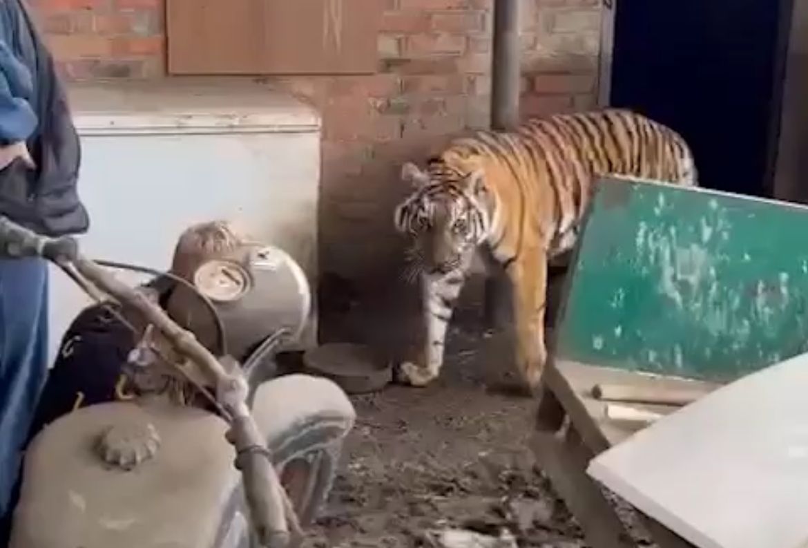 Тигрица три года жила в сарае у местного в станице Староминской. Когда её пришли изымать, хозяин вместе с животным пытался сбежать.
