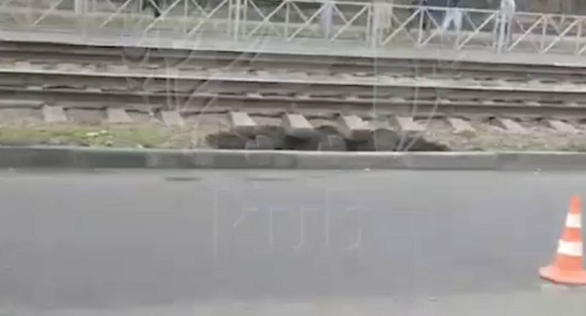 Движение трамваев опять изменилось из-за нового провала грунта на Московской.