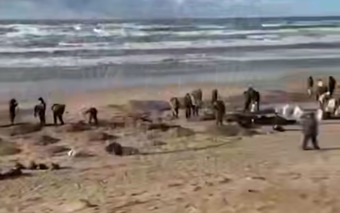 Чёрные пласты раскидало на 29 километров от Темрюкского района аж до санатория "СИБУР-ЮГ" в районе устья реки Можепсин. На Бугазской косе поставили ограничивающие боны. Тысячи людей вышли с лопатами, мешками собирать мазут. На пляжах стоит жуткий запах — без респираторов работать невозможно.