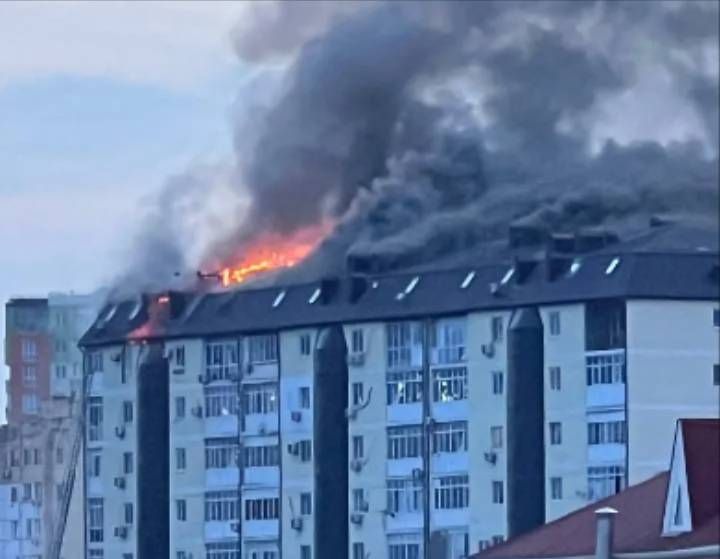 Обломок горящей крыши с высотки в Анапе едва не рухнул на головы очевидцев.