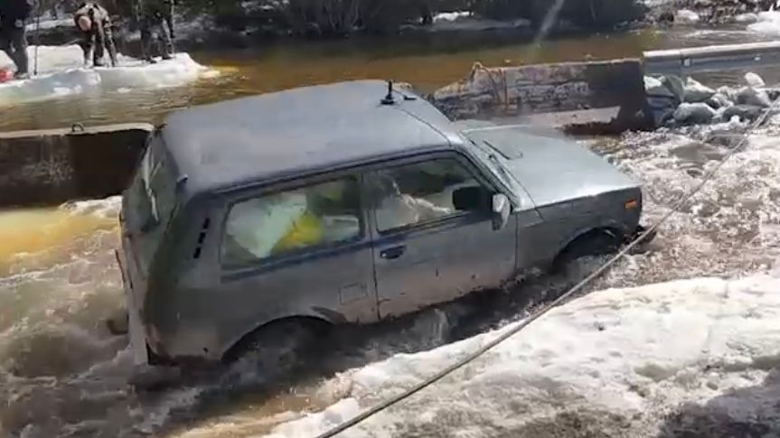 Местные долбят лёд, чтобы вода не продолжала прибывать.