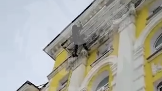 Мужчина работал на реконструкции исторического здания на Ленинском и упал вниз. Видео снимал его коллега.