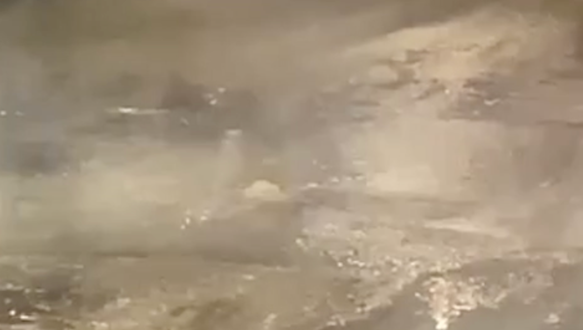 Вода заливает дорогу в районе КрасТЭЦ из-за прорыва.