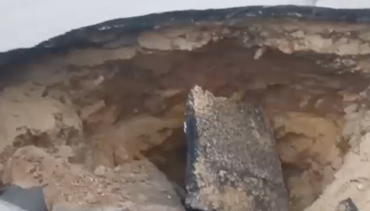 Откуда и почему взялась дырища, неизвестно. Рядом дежурят сотрудники ГАИ — следят, чтобы никто в неё не угодил. Движение со стороны Завойского в направлении Кул Гали ограничили.