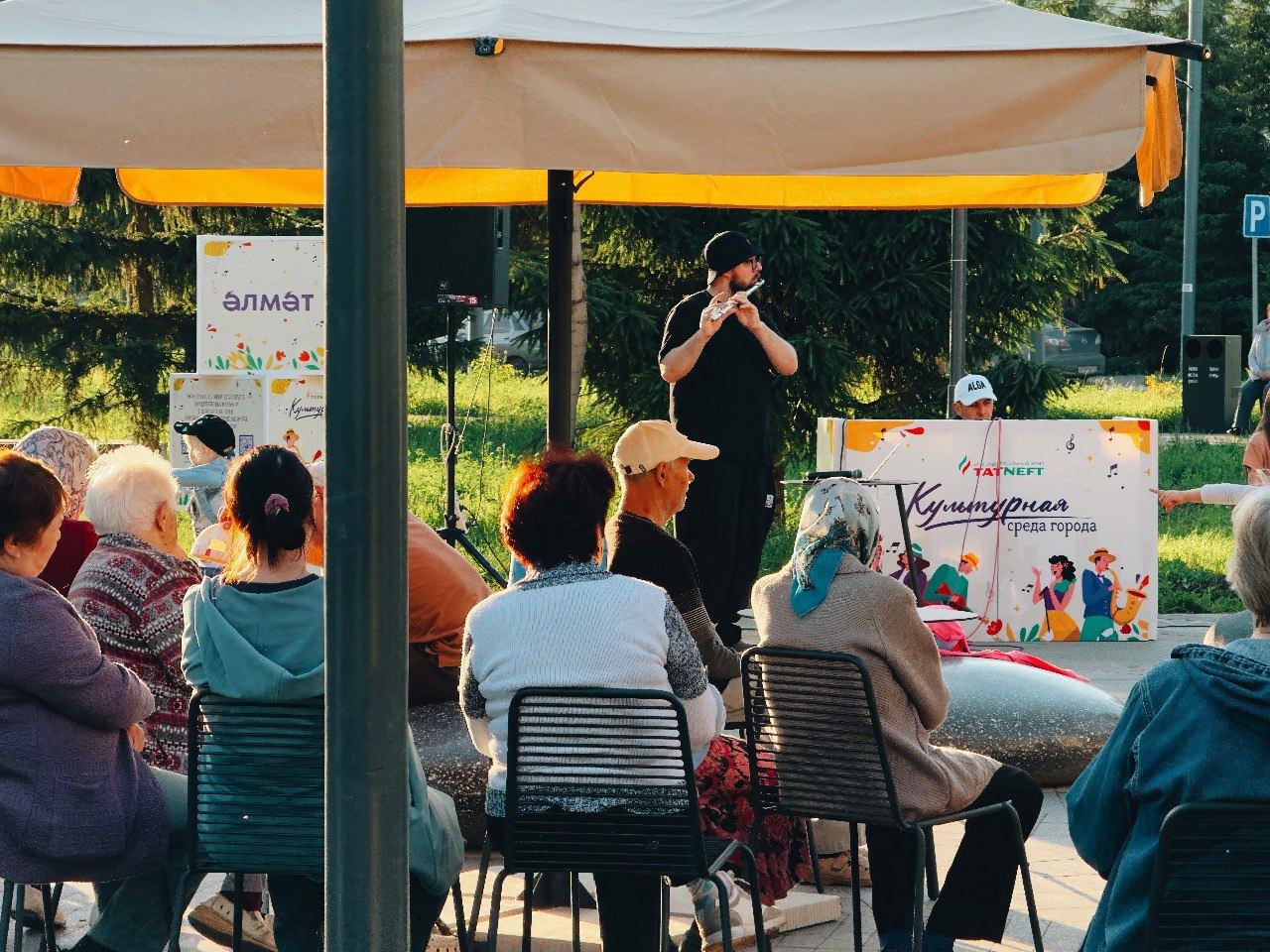 Так работает проект Татнефти "Культурная среда". Ивенты проходят каждую пятницу и субботу в парках и скверах. Всё-ё-ё лето. Так что сидеть дома точно не вариант — даже в плохую погоду. Это вам так, на заметочку.