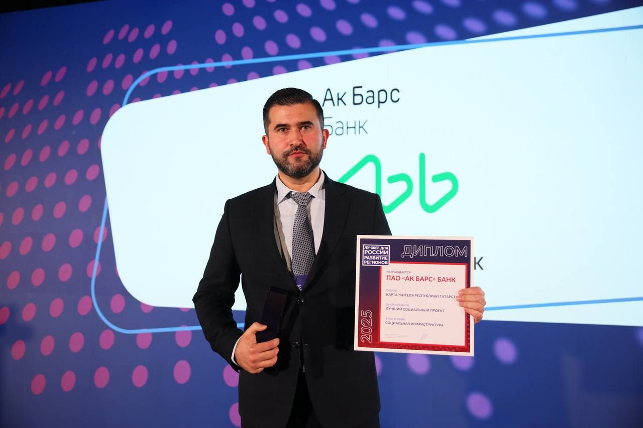 Подведены итоги ежегодной премии "Лучшее для России. Развитие регионов". Награды в номинации "Лучший социальный проект" категории "Социальная инфраструктура" в этом году удостоен флагманский продукт Ак Барс Банка — Карта жителя Республики Татарстан. Эта карта объединяет в себе банковские, государственные, городские и социальные сервисы.