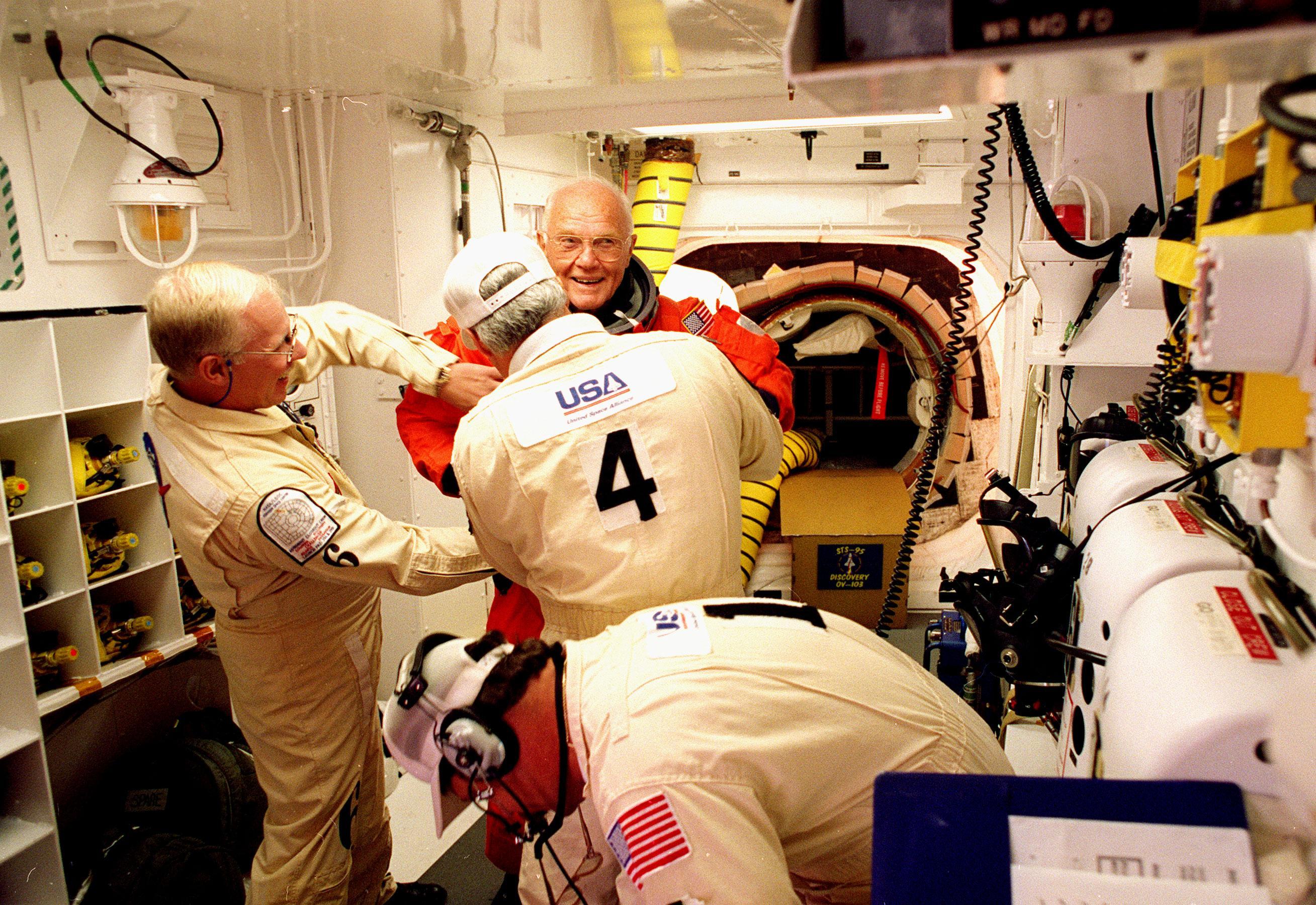 Пока Гленн находился в космосе, он проводил эксперименты, чтобы понять, как внеземные путешествия влияют на стареющее тело. И сравнивал с данными, полученными 36 лет назад. По возвращении его также встречали парадом, снова напевая Fly Me to the Moon. Всё было как в первый раз.