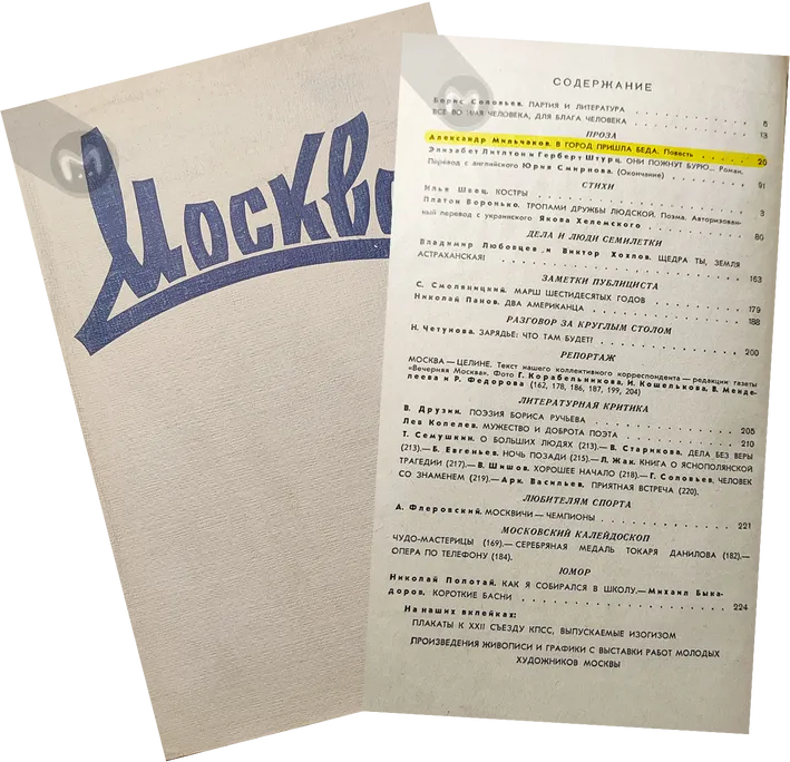 Молодой литератор понимал, что кратчайшая дорожка к признанию лежит через сенсацию. Читатель всегда рад, если есть хлеб и зрелища. Его очерки признали лучшими материалами года по итогам конкурса журнала «Смена». А значит, пути назад не было. Так родилось художественное произведение, сдобренное множеством ярких деталей, — «В город пришла беда».