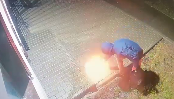Пришлось дорабатывать руками и самому поджечь разлитую по земле смесь. Так что загорелся только асфальт у входа и сам поджигатель. Его уже ищут по запаху жжёных волос и отсутствию бровей. Возбуждена уголовка по статье "Хулиганство".