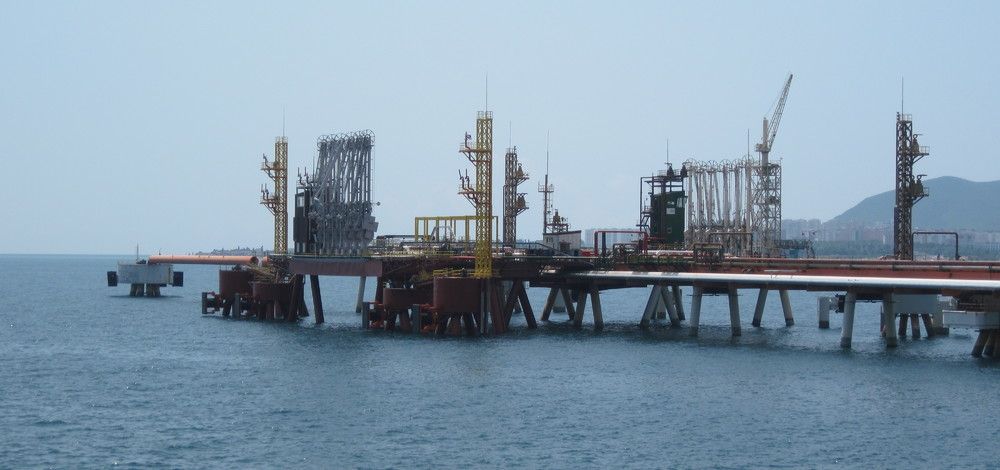 На перевалочном комплексе "Шесхарис" грузится нефть с месторождений России, Казахстана и Азербайджана для отправки за рубеж.