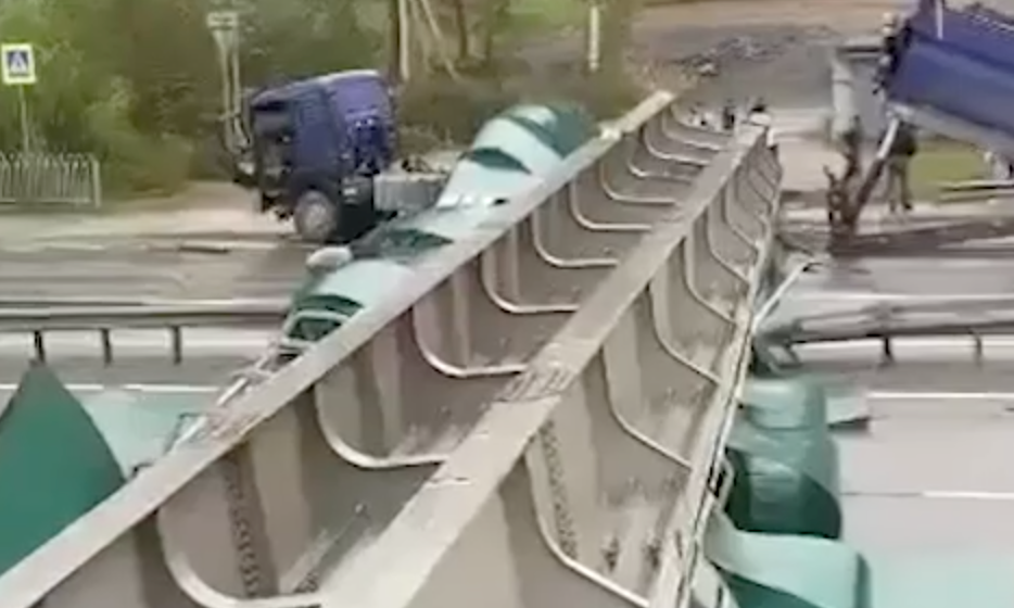 Виадук рухнул на трассу в пригороде Владивостока — его сбил самосвал.