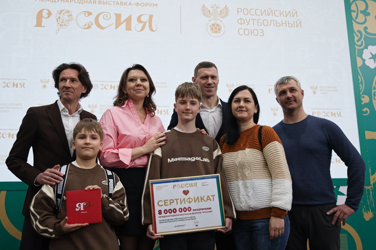 Знакомьтесь с восьмимиллионным посетителем выставки "Россия" на ВДНХ — 14-летний Вадим Гейзер из Тюмени. В нужном месте парниша оказался настолько вовремя, что получил билеты на матч нашей сборной по футболу.
