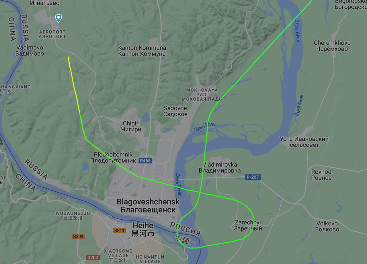 Произошло всё вчера в 09:42 (мск). По информации Mash, рейс SU6879 уже подлетал к Благовещенску, но неожиданно очередь захода на посадку изменилась. Первым должен был сесть вертолёт, а самолёт отправили на второй круг. Тогда пилоты дали маху и в обход инструкций диспетчера залетели на территорию КНР. Благо всего на несколько секунд. После — успешная посадка в аэропорту Игнатьево.