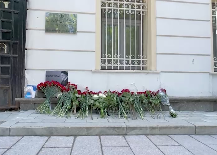 Москвичи пришли к посольству Ирана, чтобы возложить цветы в память о президенте Раиси.
