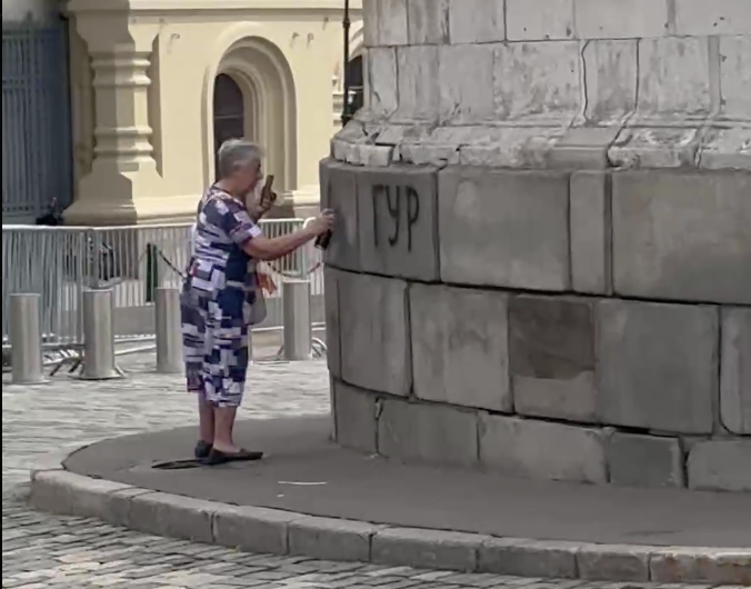 Очередную жертву украинских мошенников схватили на месте преступления. Бабуля испортила Лобное место на Красной площади надписью "ГУР". При себе у старушки телефон с видео содеянного и баллончик с краской.